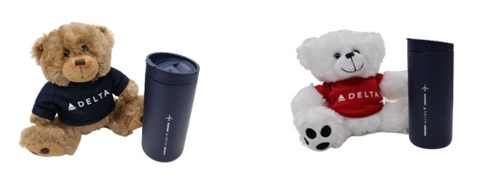 ・旅先やオフィスで大活躍するスタイリッシュなタンブラーと、デルタ航空のロゴ入りTシャツを着たキュートなベアのセット。MiiR社製タンブラーにはデルタ航空のロゴが刻印されています。ご出発前のワクワク感や、ご帰宅後のリラックスタイムを演出する、ファン必見のオリジナルアイテムです。
