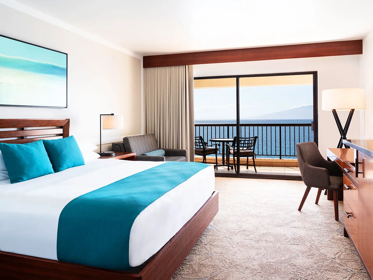 客室の約80%がオーシャンビューで、素晴らしい海と夕日の絶景を望むことができます。6つのホテル棟はそれぞれハワイ語の名前がつけられ、広々とした客室にはハワイのアート作品を取り入れた熱帯をテーマにした内装が施され、優雅で鮮やかな雰囲気を醸し出しています。2019年には部屋とロビーが改装され、より快適で洗練された空間となりました。
